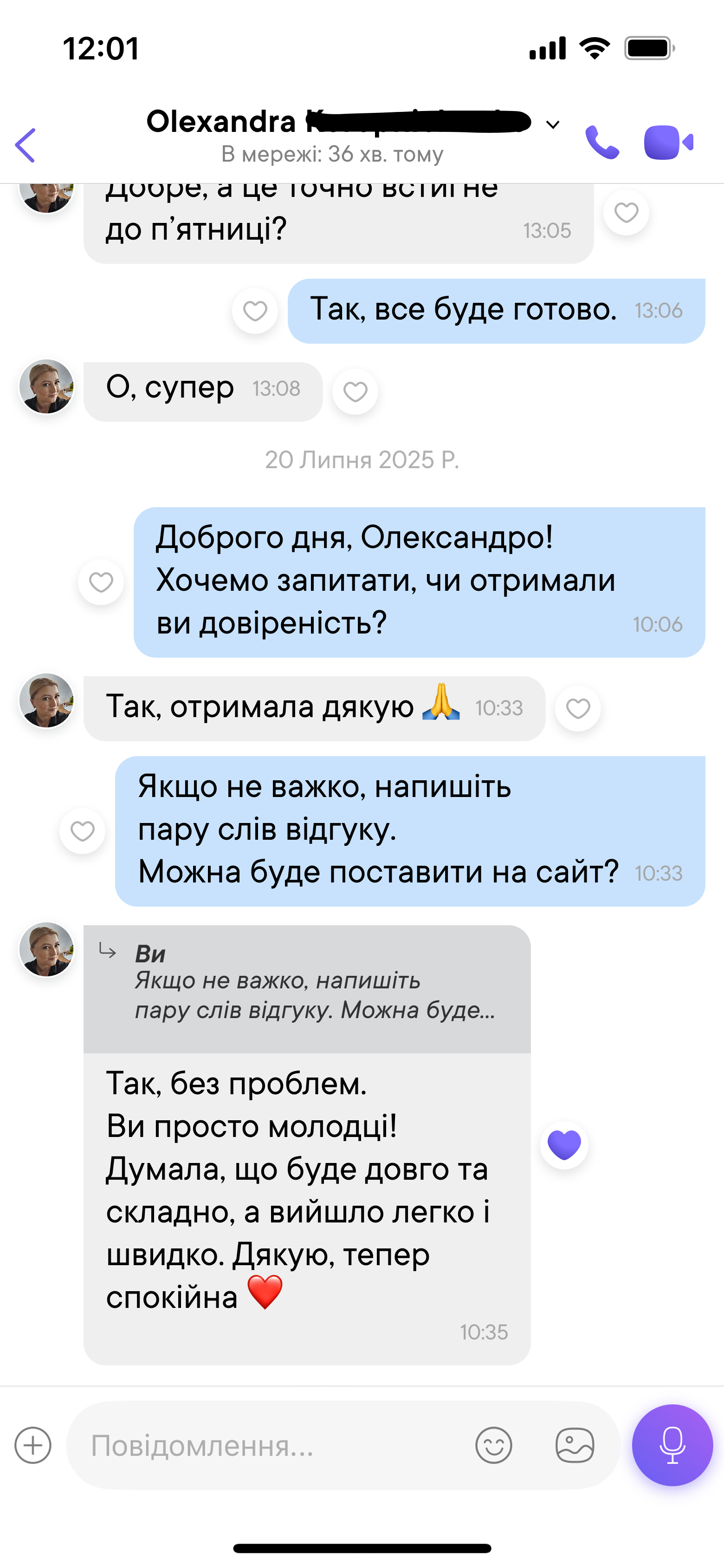 Обговоримо вашу ситуацію, визначимо потрібний тип документу та пояснимо всі деталі оформлення.